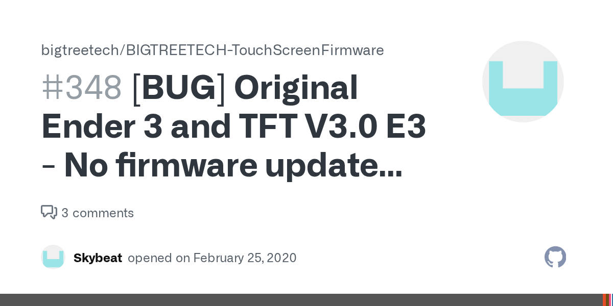 I currently am providing firmware for the ender 3 with my abl probe already setup in it.. Oct 13, 2021 · with platformio project open, select "build all" from the project tasks listed under the vscode side bar. Copy firmware.bin to the root of an sd card. 13.07.2020 · ender 3 firmware bigtreetech skr mini e3.v1.1.5/v4.2.2 mainboard firmware/bl touch firmware download. Nov 17, 2021 · 186 bigtreetech firmware ender 3 gratis. I know that there is firmware for this exact setup on the bigtreetech github but even if i use the z home firmware file the printer head still crashes into the bed. Bigtreetech skr mini e3 v2.0 new upgrade control board 32bit with tmc2209 uart driver 3d printer parts cheetah for creality ender 3. I couldn't find a version for the ender 3 to match my hardware, and i noticed a lot of people were having problems getting this board running on the ender 3... Jul 13, 2020 · ender 3 firmware bigtreetech skr mini e3.